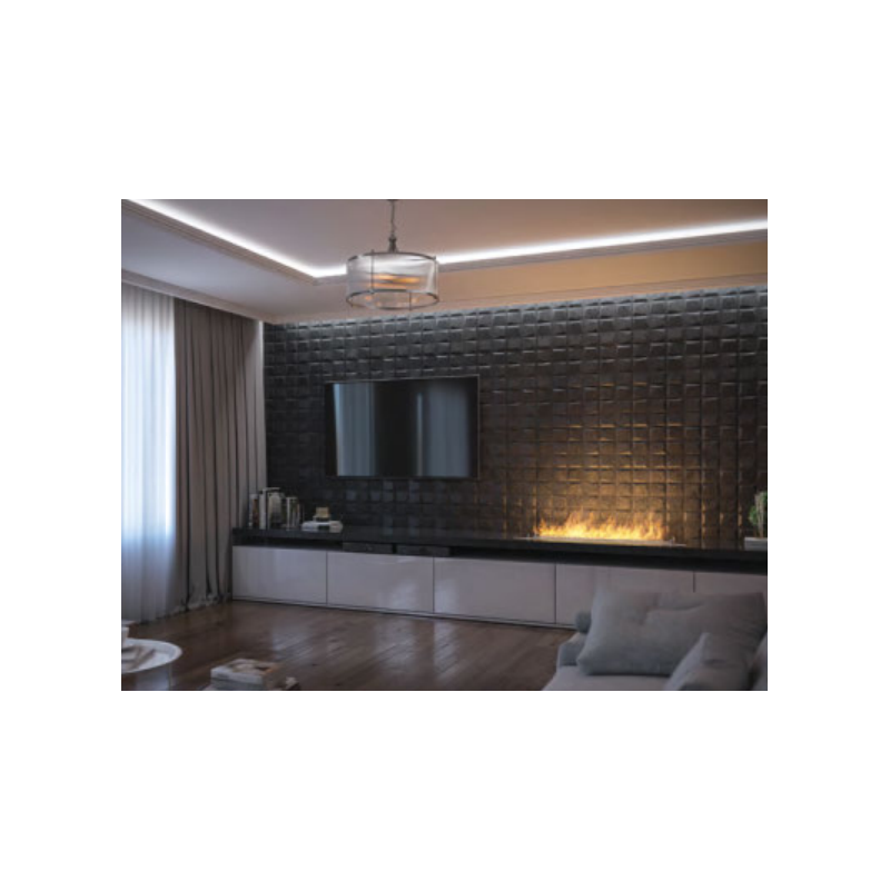 EINSATZ 1200 ist ein Brenner, der für den Einbau in eine vorbereitete Aussparung konzipiert ist. Die 1000-mm-Brennkammer ist mit den Fenstern und dem schönen Finish für ein modernes und Designer-Ganzes installiert.