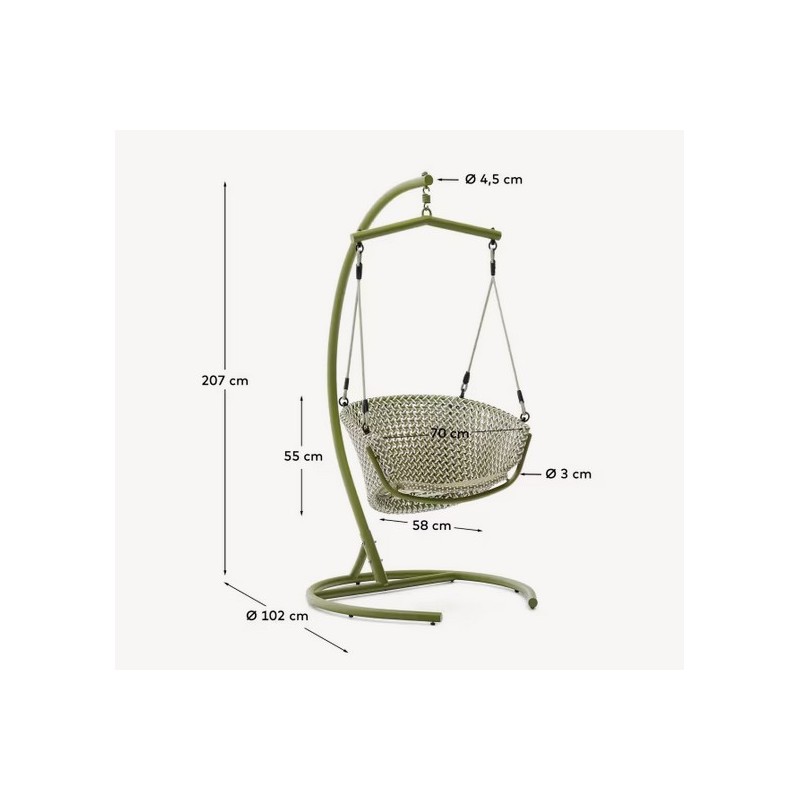 Aliga Hängesessel aus Aluminium und grünem Rattan VeryForma