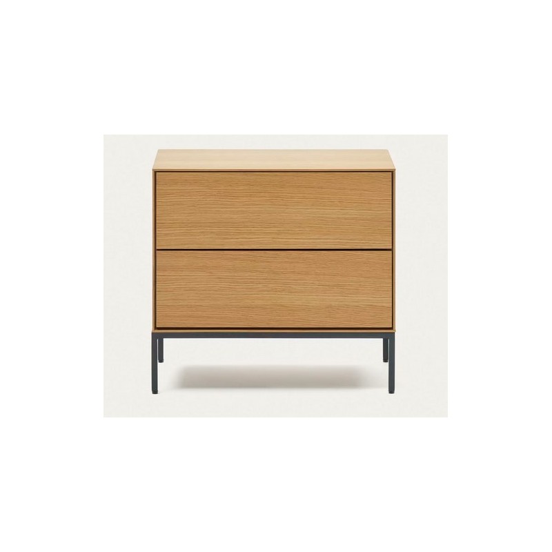 Nachttisch aus Rana-Eichenfurnier mit modernem Finish und 2 Schubladen.
