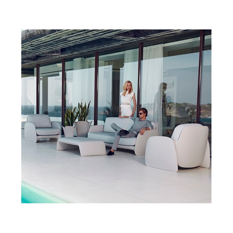 Gartenmöbel Pezzetina von Vondom, bestehend aus einem Sofa, einem Lounge-Sessel und einem ultramodernen Couchtisch für den Innen- und Außenbereich.