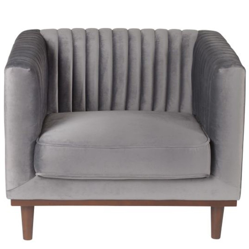 Wir lieben diesen hübschen dante grauen Samtsessel für sein klassisches revisited Design.