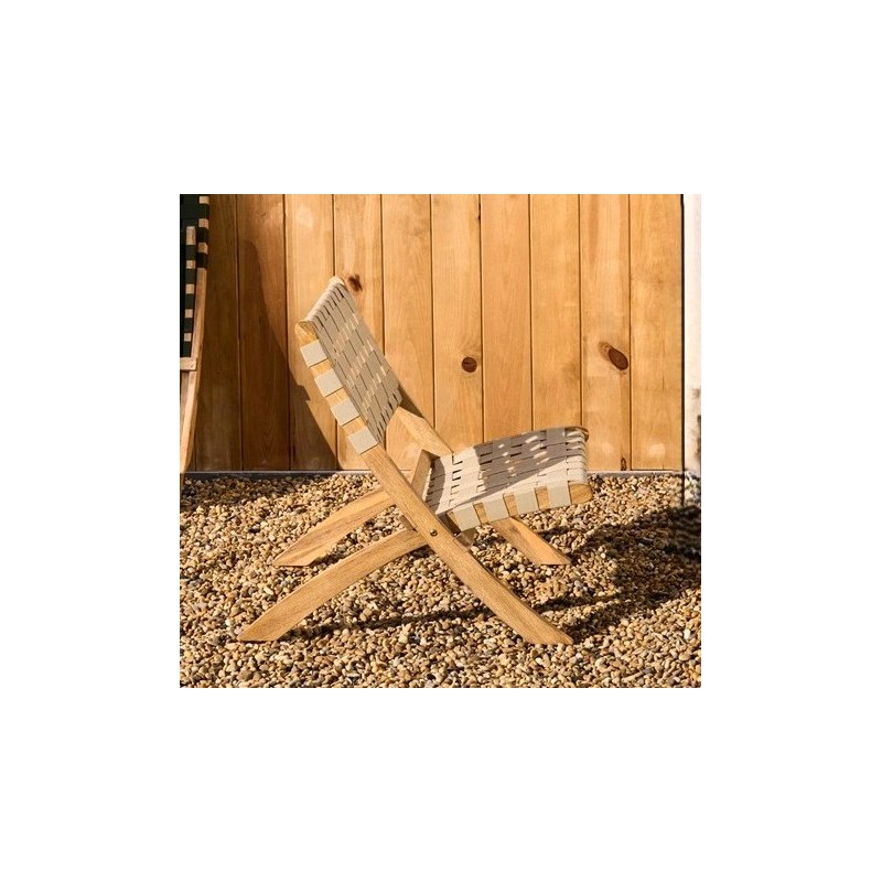 Foldable armchair in solid acacia wood and FSC cream rope. Suitable for outdoor use. Seat height 36 cm.