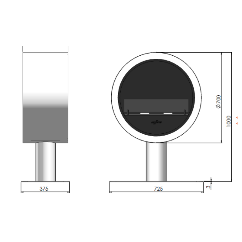 Bioethanol fireplace Incyrcle with stand: Stainless steel burner with 1 litre tank.