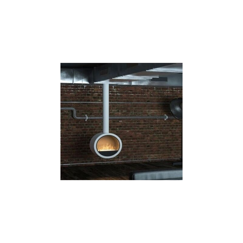 The Bioethanol Fireplace Incyrcle With 1 pane of glass is to be hung on the ceiling with its round tube but can also be placed against a wall.