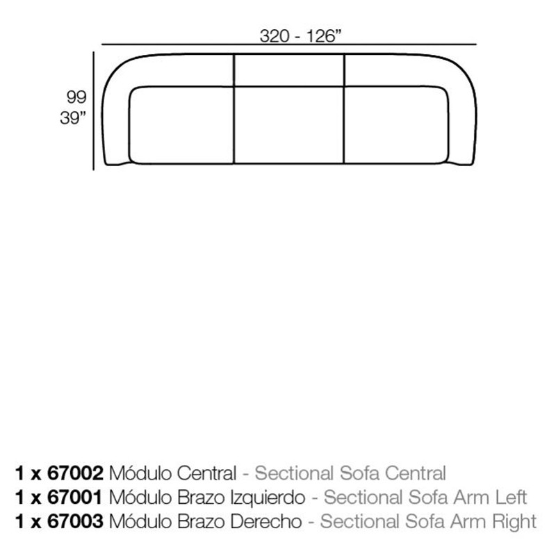 Namely: Seat height: 36cm. Indoor and outdoor use. New manufacturing method extremely resistant, UV, weather and wetland resistant. Entirely upholstered with Premium Glad fabric from the Brand Ten Stars Yarn. Comfortable fabric, warm, pleasant touch, water repellent (water flows on its surface) and antibacterial treated. Injected polyurethane foam, perfectly waterproof and with a high drying capacity, in addition to its comfort, softness and ease of maintenance. Rigidity of the module and maintenance of the backrest and armrests, ensured by an internal steel structure, treated for the outside by cataphoresis and embedded in polyurethane foam. High-end materials and design, ideal for outdoor professional use, including in marine environments and in areas with high humidity (Spa, aquatic center).