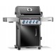 The Napoleon Rogue® PRO 425 RSIB black barbecue with Infrared has stainless steel grates, a Jetfire ignition and a folding side shelf including 1 infrared, with the rotisserie, it allows for top cooking.