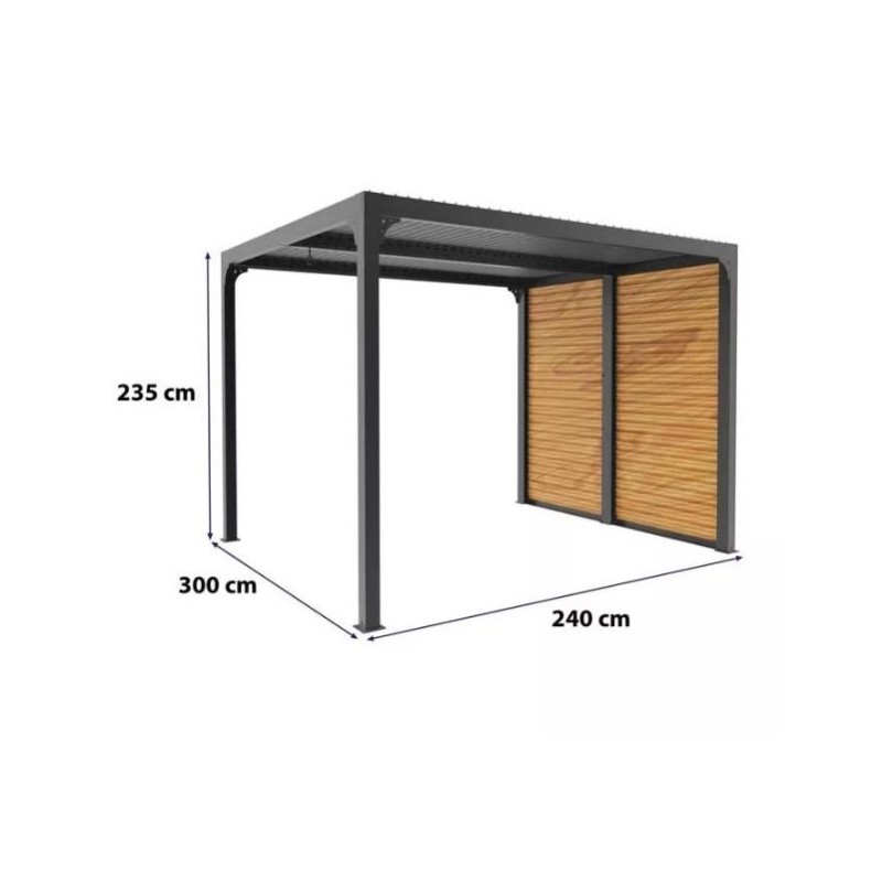 In order to optimize your comfort, the bioclimatic pergola is equipped with a set of 2 side panels with removable suction cups for one of the sides of 3 m aluminum imitation wood.