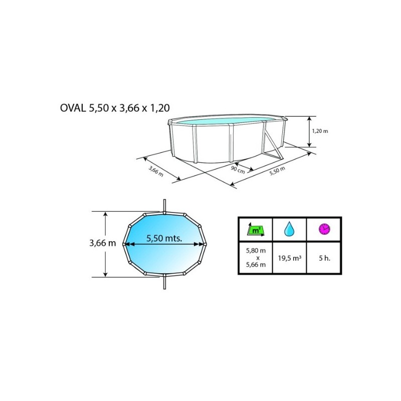 Above ground pool TOI oval Mallorca white 550x366xH120 with its complete kit ready to swim.