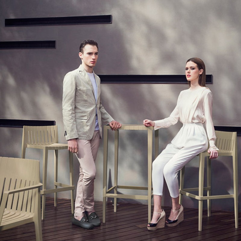 On the practical side, the elements of the Spritz table set and two stools are very sturdy, light and easy to maintain. Very handy, the stools are also stackable, for a perfect optimization of your spaces.