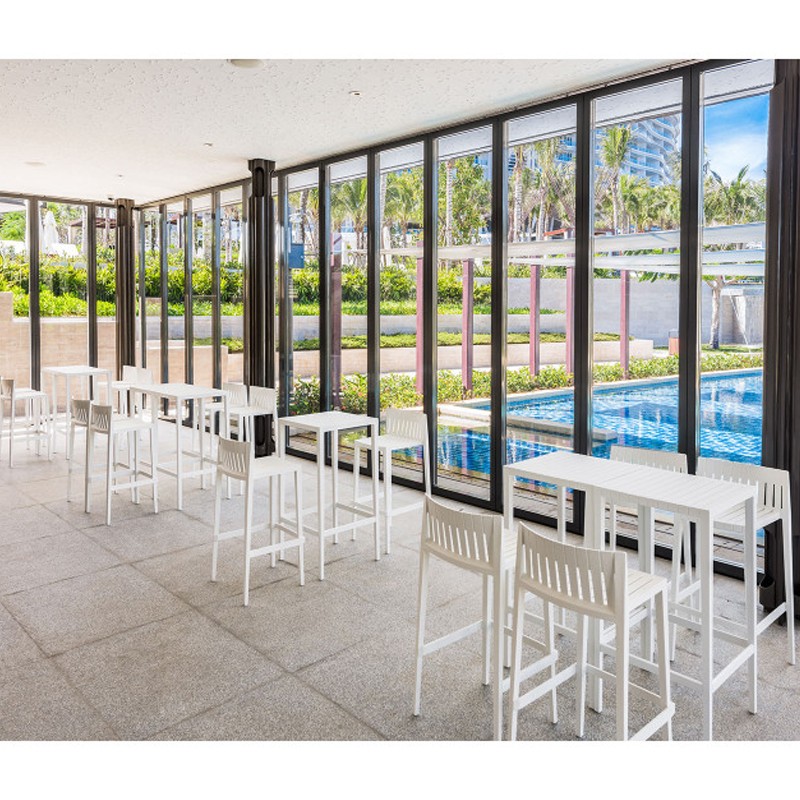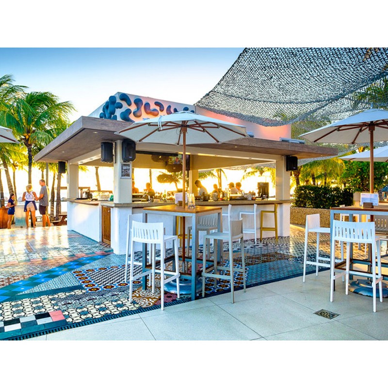 Composed of two high stools and a high table, the Spritz table set and two stools reminds us of the white wooden fences that line the beach.
