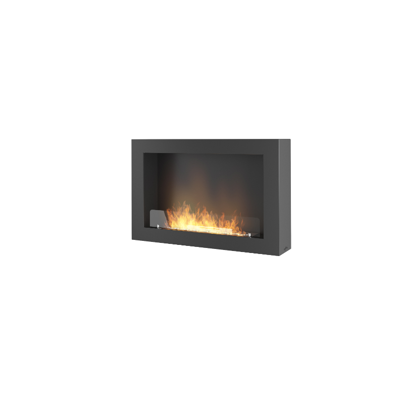 La chimenea de bioetanol Murall 800, sin conducto con 1 hoja de vidrio, se puede instalar suspendida de la pared.