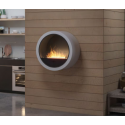 La chimenea de bioetanol Incyrcle 700, sin conductos con 1 panel de vidrio, se puede instalar suspendida en la pared.