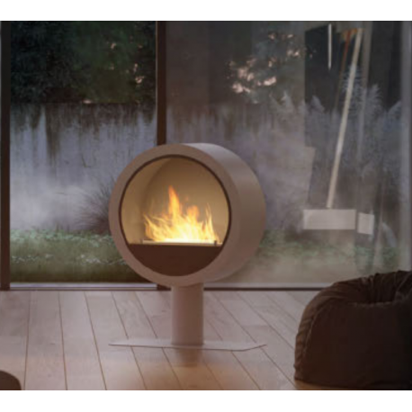 El fuego proporciona un efecto visual extraordinario, que gracias a su forma redonda se puede instalar en cualquier interior con su sistema de suspensión de pared. La chimenea montada en la pared se puede mover fácilmente al cambiar de casa.