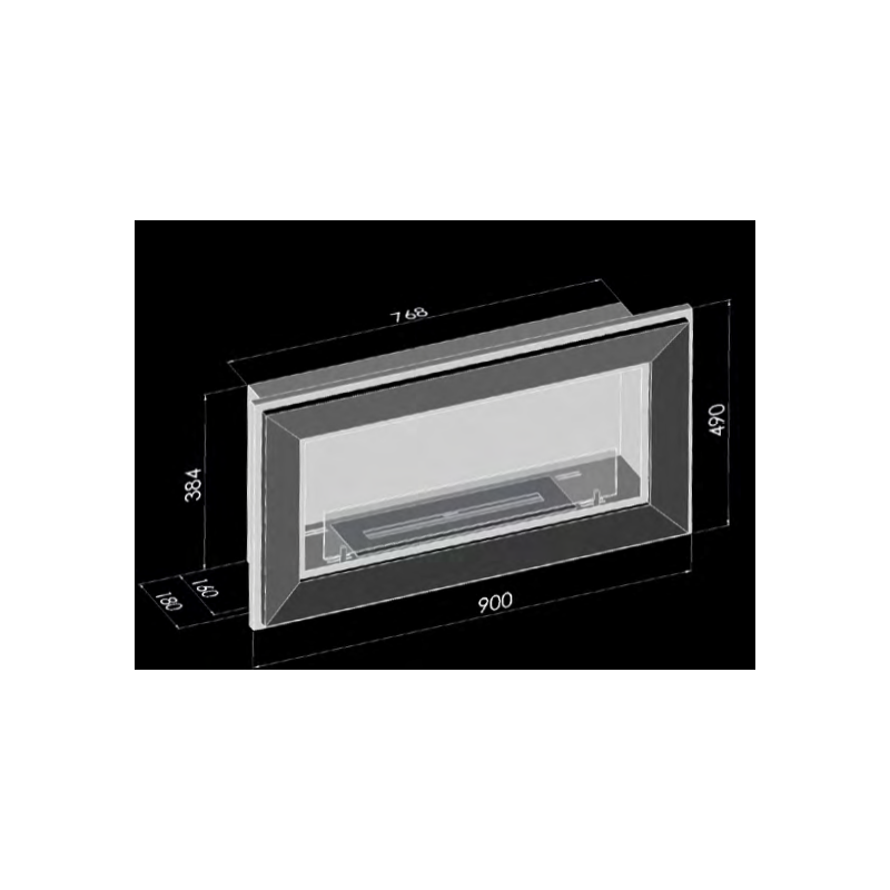 La chimenea de bioetanol sin conductos Frame 900 con 1 panel de vidrio se puede instalar suspendida o empotrada en la pared.