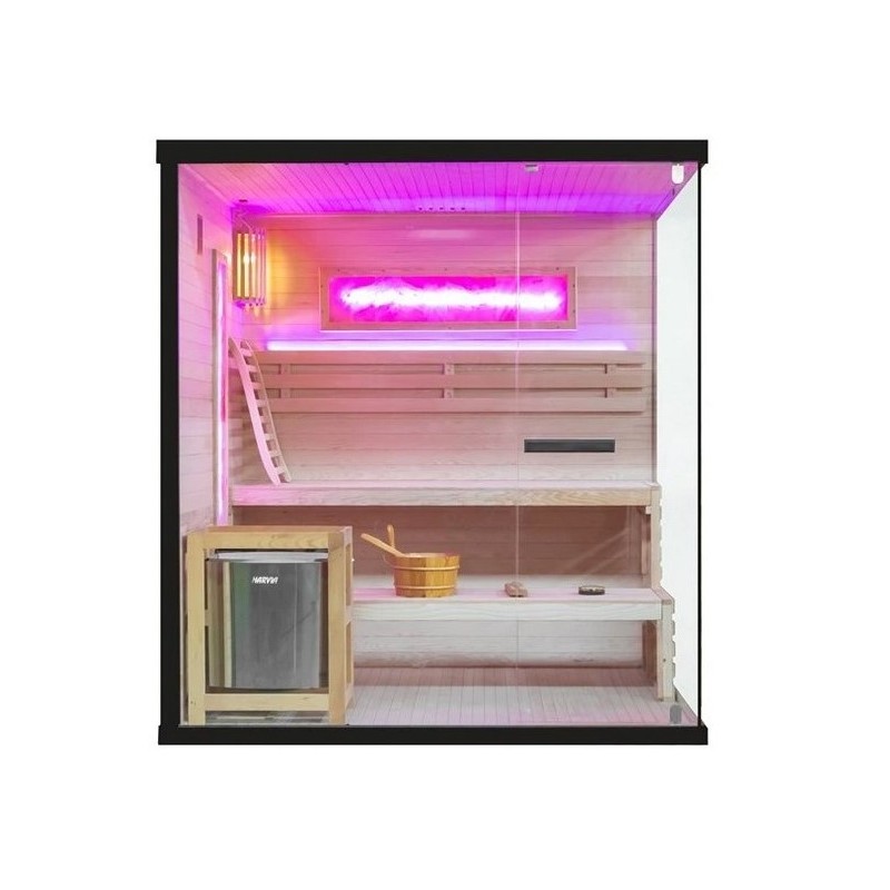 Cabina de sauna panorámica de esquina para interiores de 2 a 4 personas: