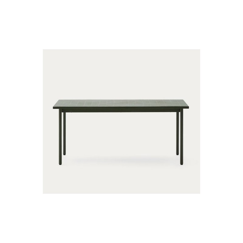 Mesa de jardín Rina en acero verde y cerámica verde oscuro VeryForma