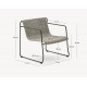 Fauteuil en acier galvanisé avec assise et dossier en corde chinée gris, tressée à la main et résistante aux rayons UV. Convient pour l'extérieur. Hauteur de l’assise 42 cm.