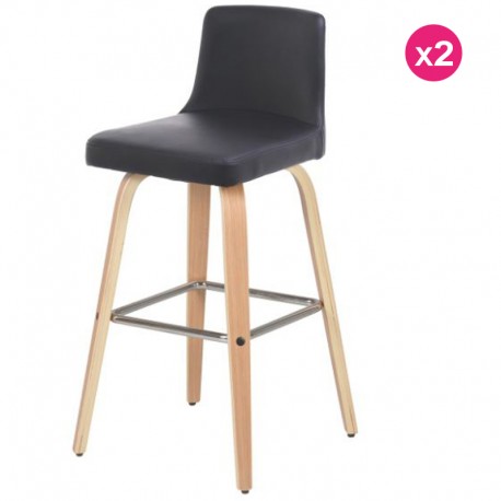 Lot de 2 chaises Plan de Travail Noir Similicuir et Contreplaqué Chêne KosyForm.