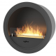 Le feu procure un effet visuel extraordinaire, qui grâce à sa forme ronde s'installe dans tous les intérieurs avec son système de suspension mural. La cheminée murale peut être déplacée facilement lors d'un changement d'habitation.