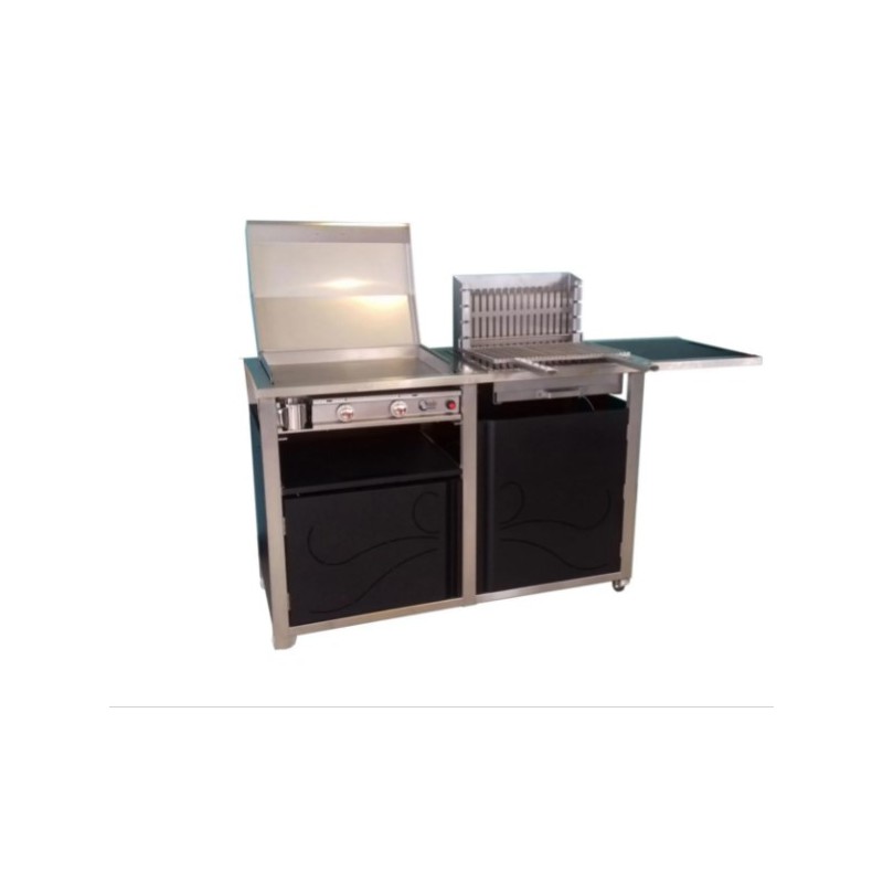 Le Combiné Barbecue et Plancha Tonio est une cuisine d’extérieure très pratique, cette cuisine se transformer en Plancha à l’heure du repas et en Barbecue.