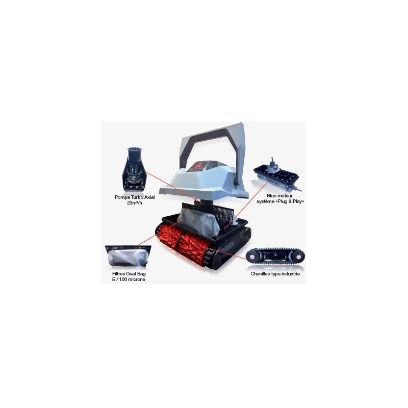 - Double filtration super fine 5 microns et gros débris 100 micros Dual Bag,