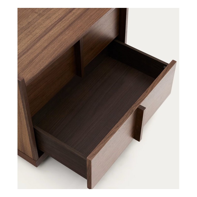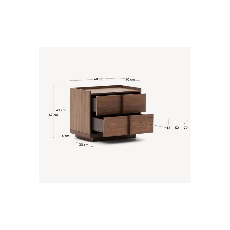 Table de nuit Noxi placage bois de noyer avec finition foncé et 2 tiroirs.