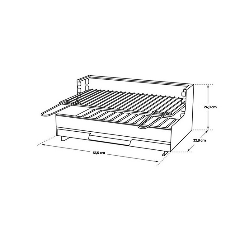 Braciere orizzontale con griglia 61x33 cm regolabile su 3 livelli.