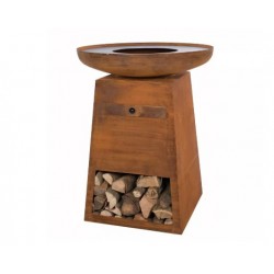 Grazie alla forma profonda della ciotola, il legno bruciato non si diffonde nemmeno in caso di forti venti e i piedini di appoggio assicurano una grande stabilità.
