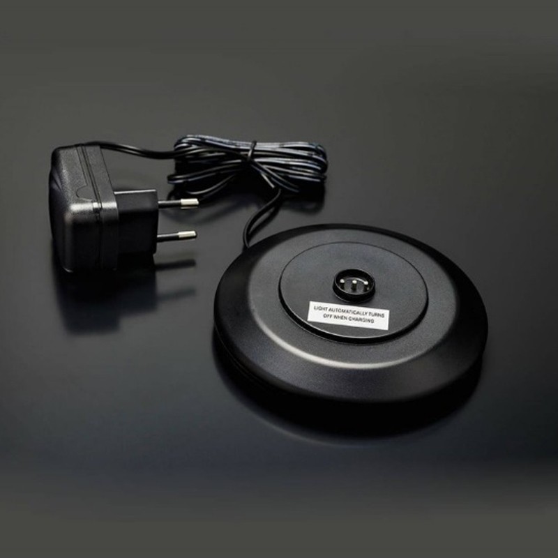 Il Moment DAP viene fornito con caricabatterie individuale, adattatore e telecomando. Questo lettore offre 24 colori pre-programmati, 4 livelli di intensità e 2 veri effetti candela. Un indicatore di carica sul fondo della lampada indica il livello di durata della batteria e la funzione Lock sul telecomando consente di bloccare la modalità e i cambi di colore direttamente sulla lampada.