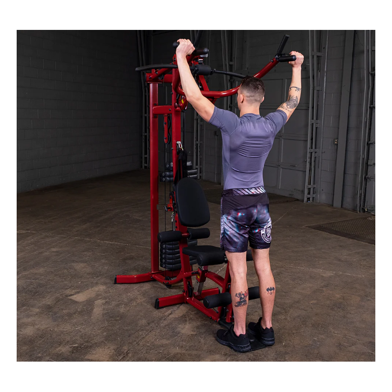 Questa palestra Best Fitness è una palestra domestica con cinque stazioni di allenamento multi-pressa, trazione laterale/puleggia alta, addominali/puleggia media, estensione delle gambe/curl delle gambe e fila di carrucole sedute/basse.