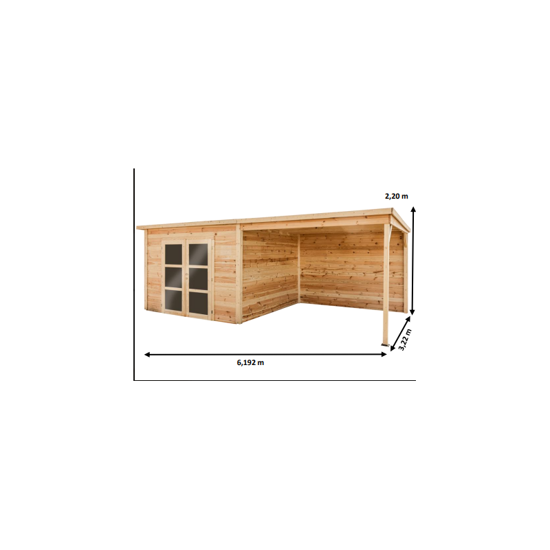 La Bahia Poolhouse con terrazza coperta e tetto piano in abete massello è una casetta da giardino realizzata in legno naturalmente durevole e resistente.