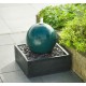 La luce, l'acqua e la superficie lucida della sfera color petrolio sono il fascino di questo gioco d'acqua dal design semplice.