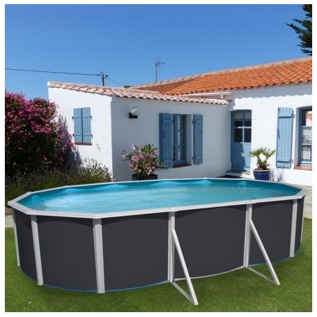 Piscine hors sol TOI ovale Prestigio Anthracite 640x366x120 avec son kit complet prêt à nager.