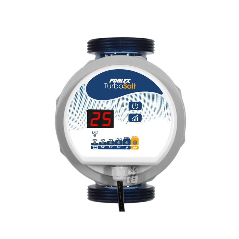 L’électrolyseur Poolex Turbo Salt 600 de piscine hors sol, pour le traitement au sel et automatise le traitement de l’eau.