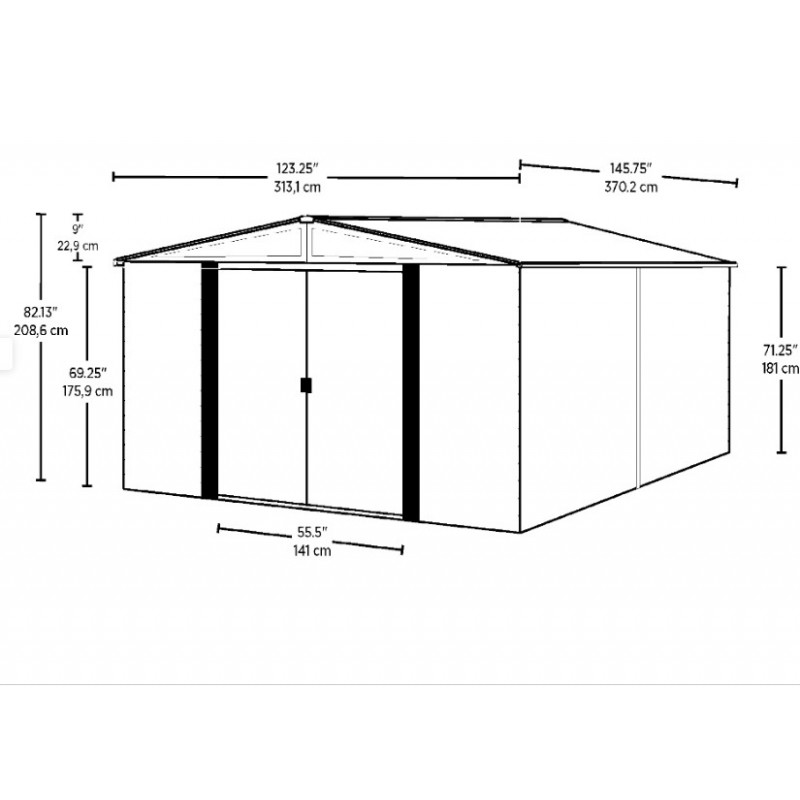 Uma vez montado, você terá um abrigo robusto, estético, com um grande volume de armazenamento de 11,59 m3.