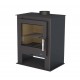 Volume aquecido: 275m3- Eficiência 80% - Porta e grade de cinzeiro de ferro fundido - Lareira de ferro fundido - Sistema de combustão dupla e vidro limpo - 3 lados vitrocerâmicos envidraçados resistentes a 750 ° C.
