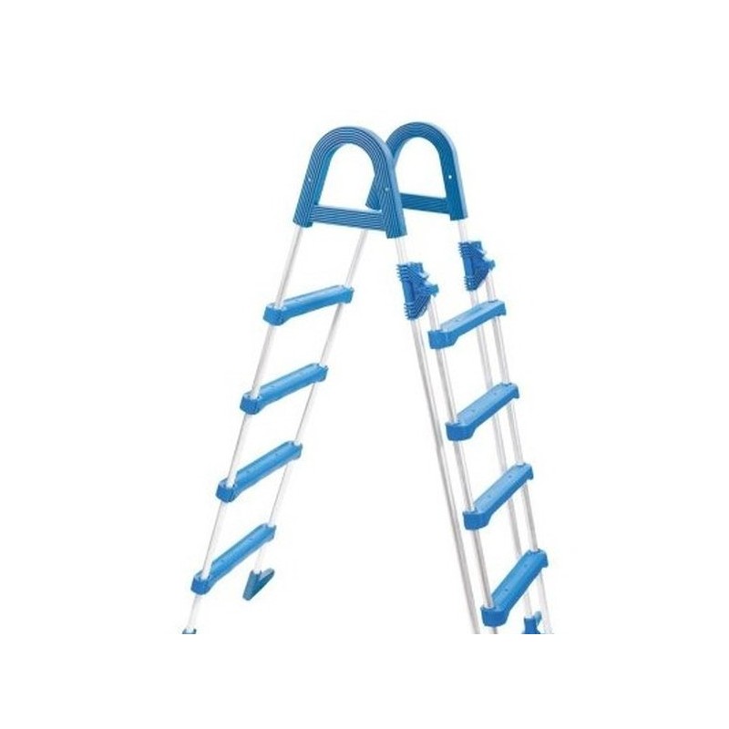 Esta piscina é equipada com uma estrutura de aço reforçado e anticorrosão tratada com uma espessura de 40/100 e barras verticais garantindo uma resistência maior do que o padrão acima das piscinas terrestres.